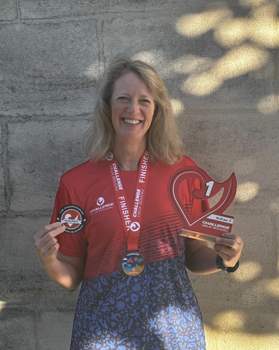 Hard work pays off. Great end to the season for Wendy Davies winning her age group at Challenge Vieux (70.3) Wendy is a respected triathlon coach herself and puts a lot of time into coaching promising athletes and really helps develop the sport from the grassroots up.